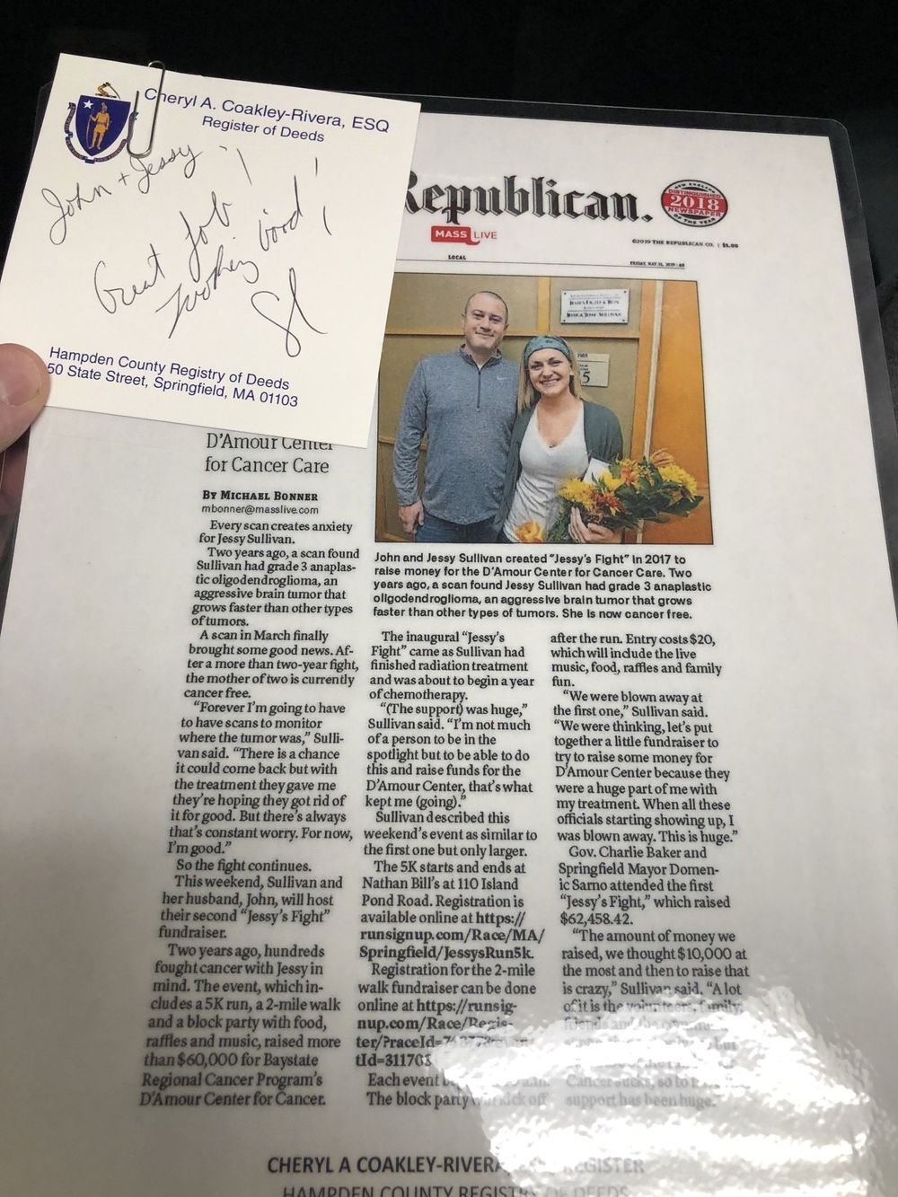 My hope with these fundraisers for the D’Amour Center for Cancer Care is give back to the establishment that saved my life. I want people to enjoy themselves and try to forget about all the constant worries that come along with cancers. I try to live each day and not worry about what tomorrow holds! Stressing about something you have no control over can eat you alive. I try to stay as healthy as I can and hope that this cancer will stay away forever!